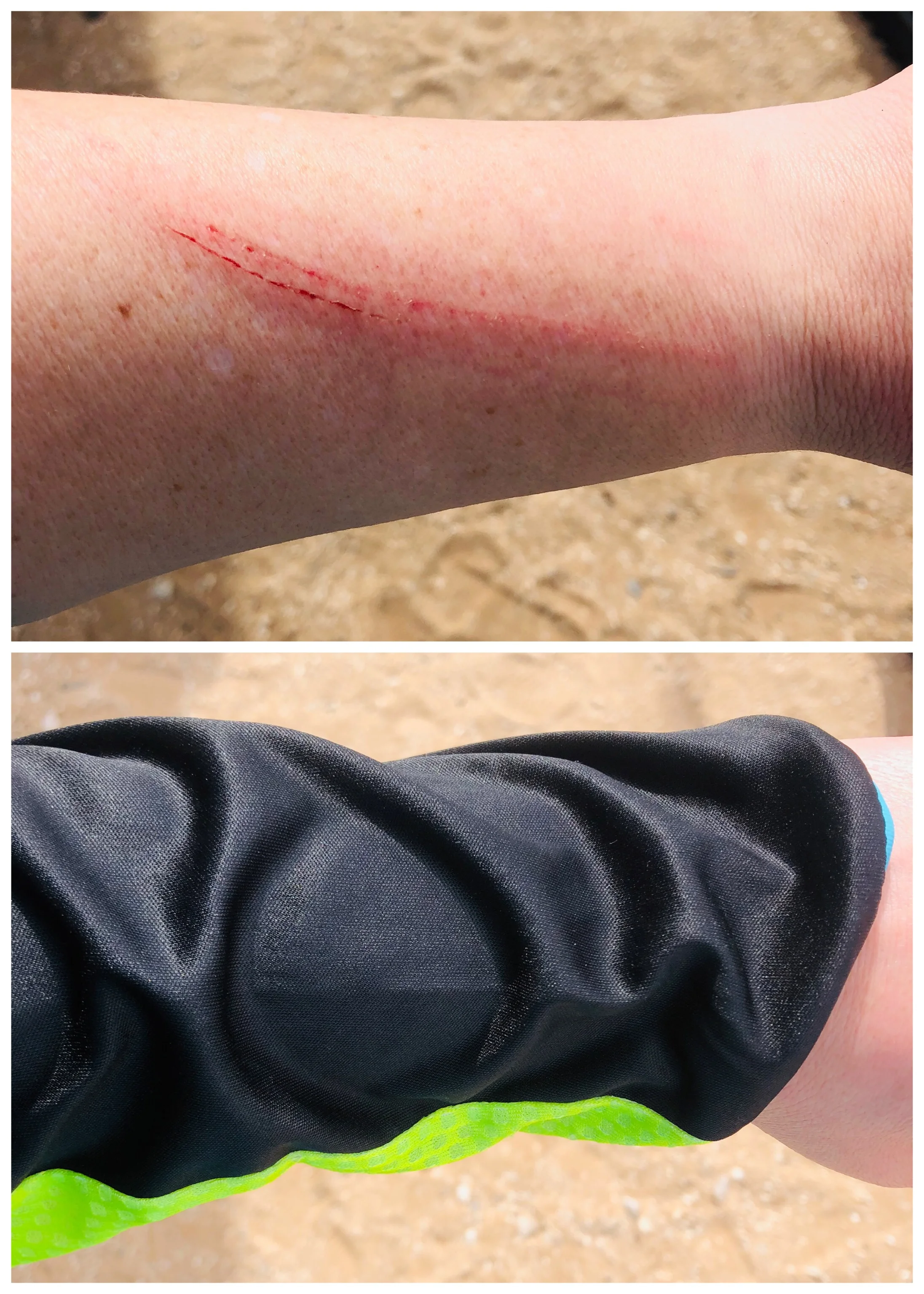 Seamless armpit construction, with a single-continuous stretch mesh panel from the sides to cuffs which helps prevents underarm rubbing and irritation