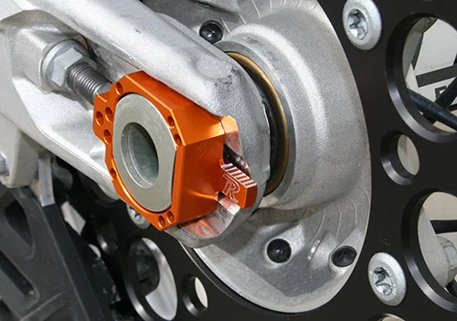 Rear Axle/Axle Blocks: Going to a Works Connection Elite axle block kit or Ride Engineering axle block kit will get rid of the fixed left axle block on the stock KTM’s axle. This will help the rear end to move more freely under throttle and improve the shock’s comfort on acceleration chop. Both are great, but you will have to decide if you want a complete axle/axle block kit like Ride Engineering’s or just the blocks themselves like WC’s.