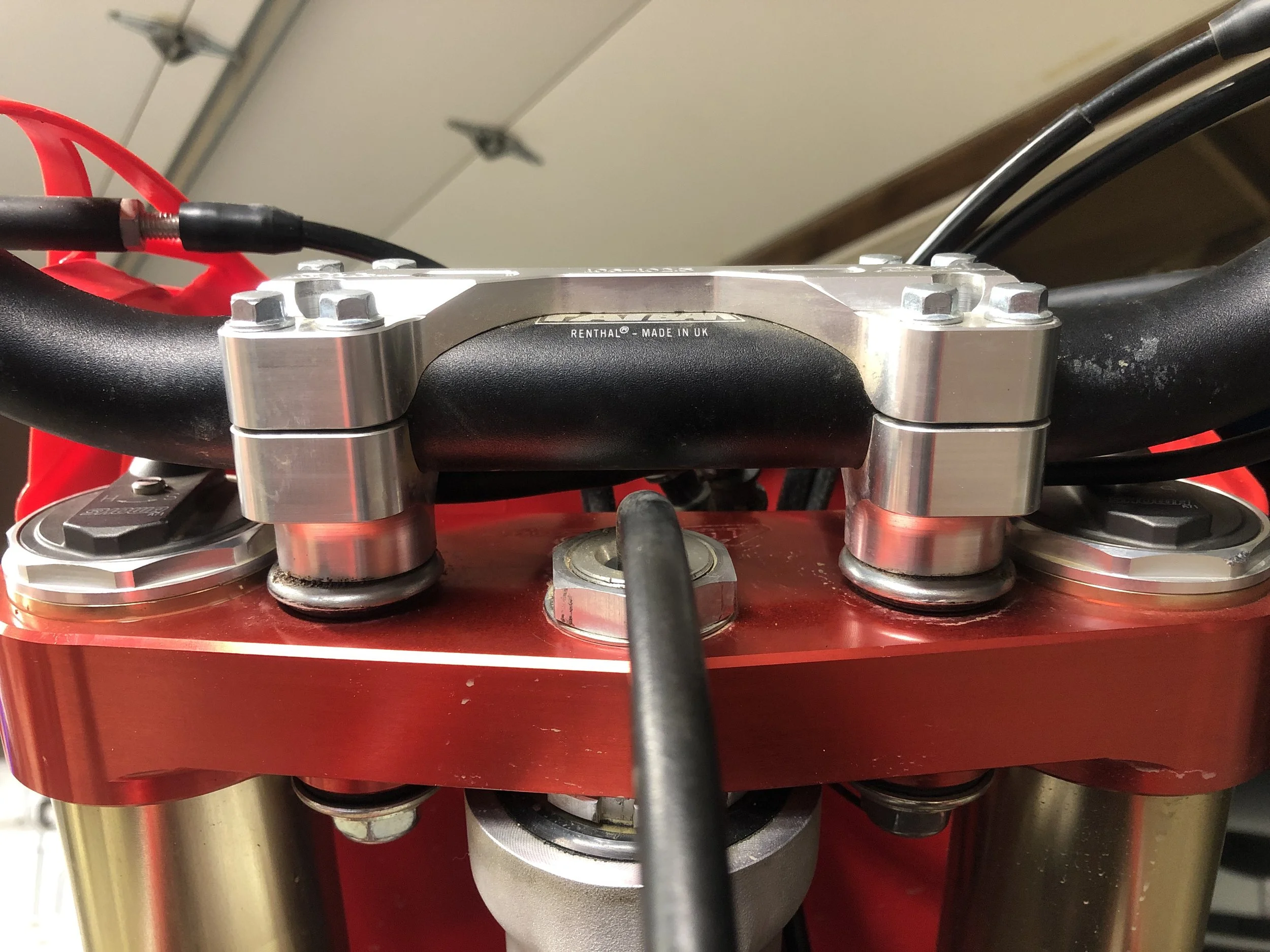 Notes: Husqvarna comes with a very low bend and that fits the ergos of this bike, but the width of the bar is too long. I actually like the stock handlebar bend on the Husqvarna, however I cut the handlebar down to 803mm, which really helps the character of the Husqvarna when leaning into corners.