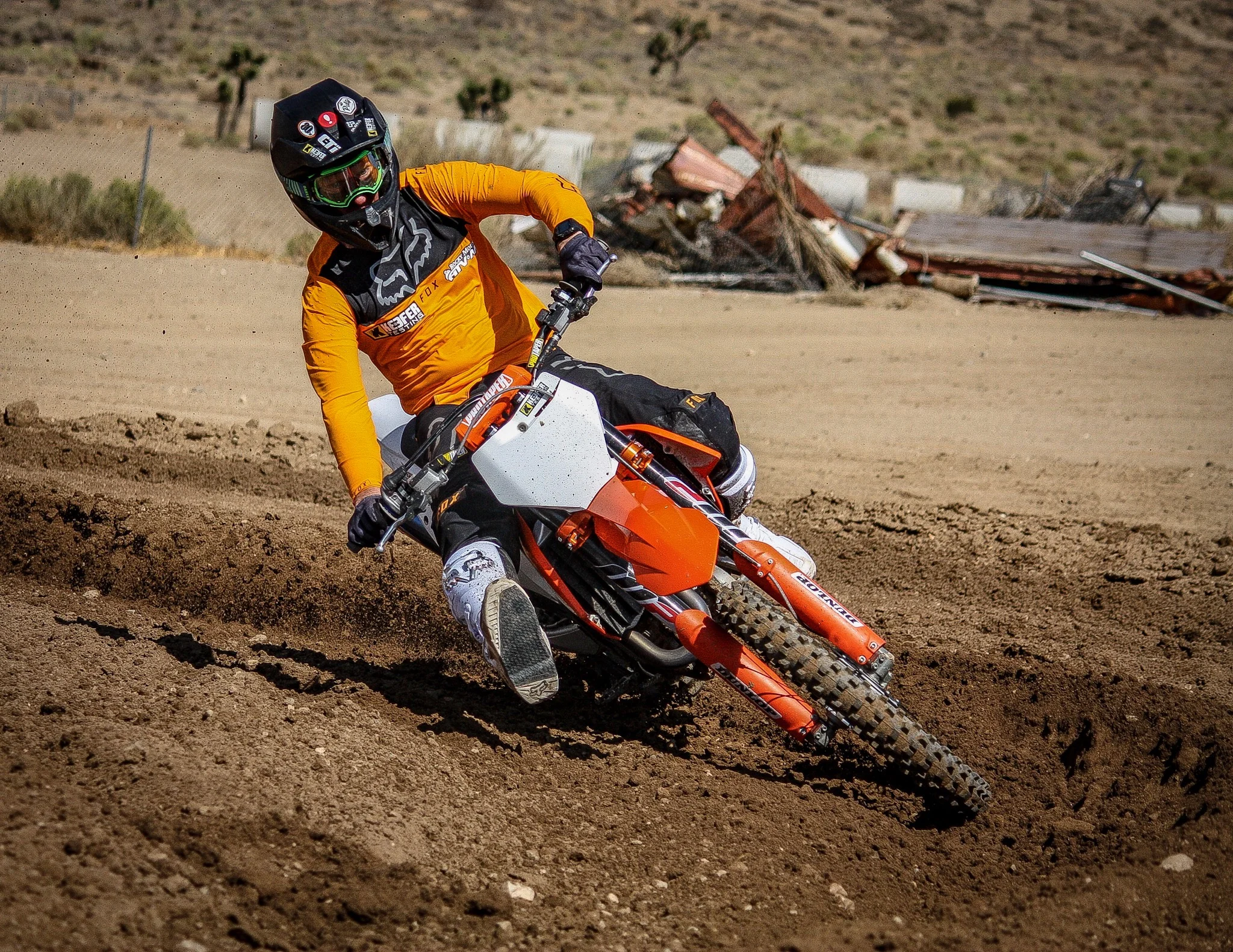 I am very picky when it comes to handlebars and I felt that the Fuzion handlebar (when in the “locked” position) is slightly more precise (than on the unlocked position) when trying to corner on hard pack slick surfaces. Also, to my surprise only a little more rigidity was felt on braking bumps and on flat landings when “locked”. The smoother the track surfaces the better the Fuzion worked in the locked position. However, 90% of the time I felt the Fuzion felt best when “unlocked”. Especially for the hacked out, choppy, desert tracks I test on. A few tip overs and one big get off left me praising the Fuzion’s durability. This happened on the Husqvarna and the handlebar got twisted in the bar mounts, but the handlebar itself wasn’t bent.